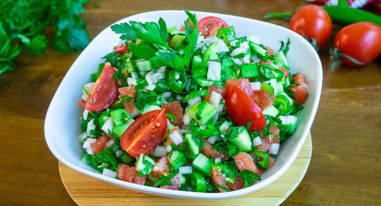 Domates, salatalık, biber ve soğan ile hazırlanan taze bir salata.